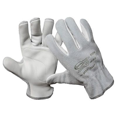 Luva de segurança confeccionada em vaqueta na palma e face palmar dos dedos, dorso e face dorsal dos dedos em raspa, reforço interno em vaqueta na palma, elástico no dorso.