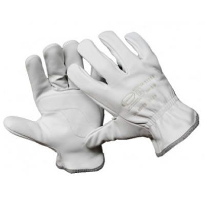 Luva de segurança, confeccionada em vaqueta, reforço interno na palma.
