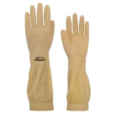 Luva de segurança confeccionada em borracha natural (látex) super reforçada; sem revestimento interno; antiderrapante na face palmar, nos dedos e na ponta dos dedos.
